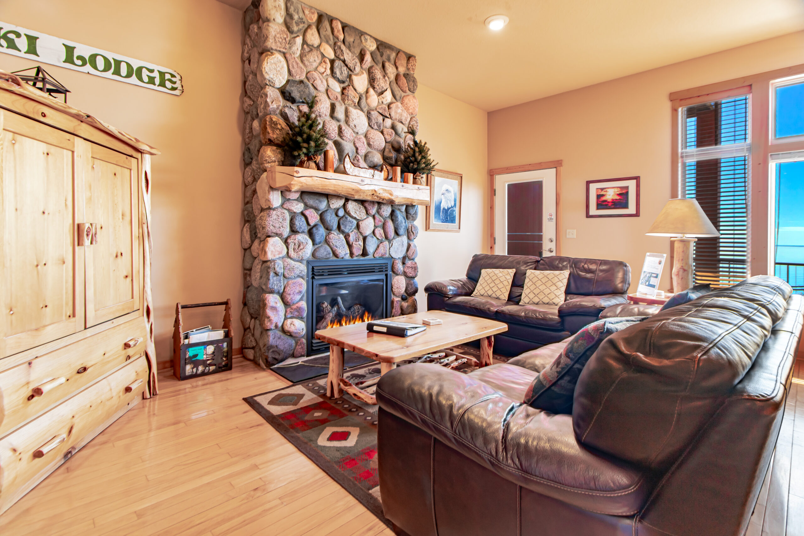 - Living Room: With view of Lake superior and stone fireplace