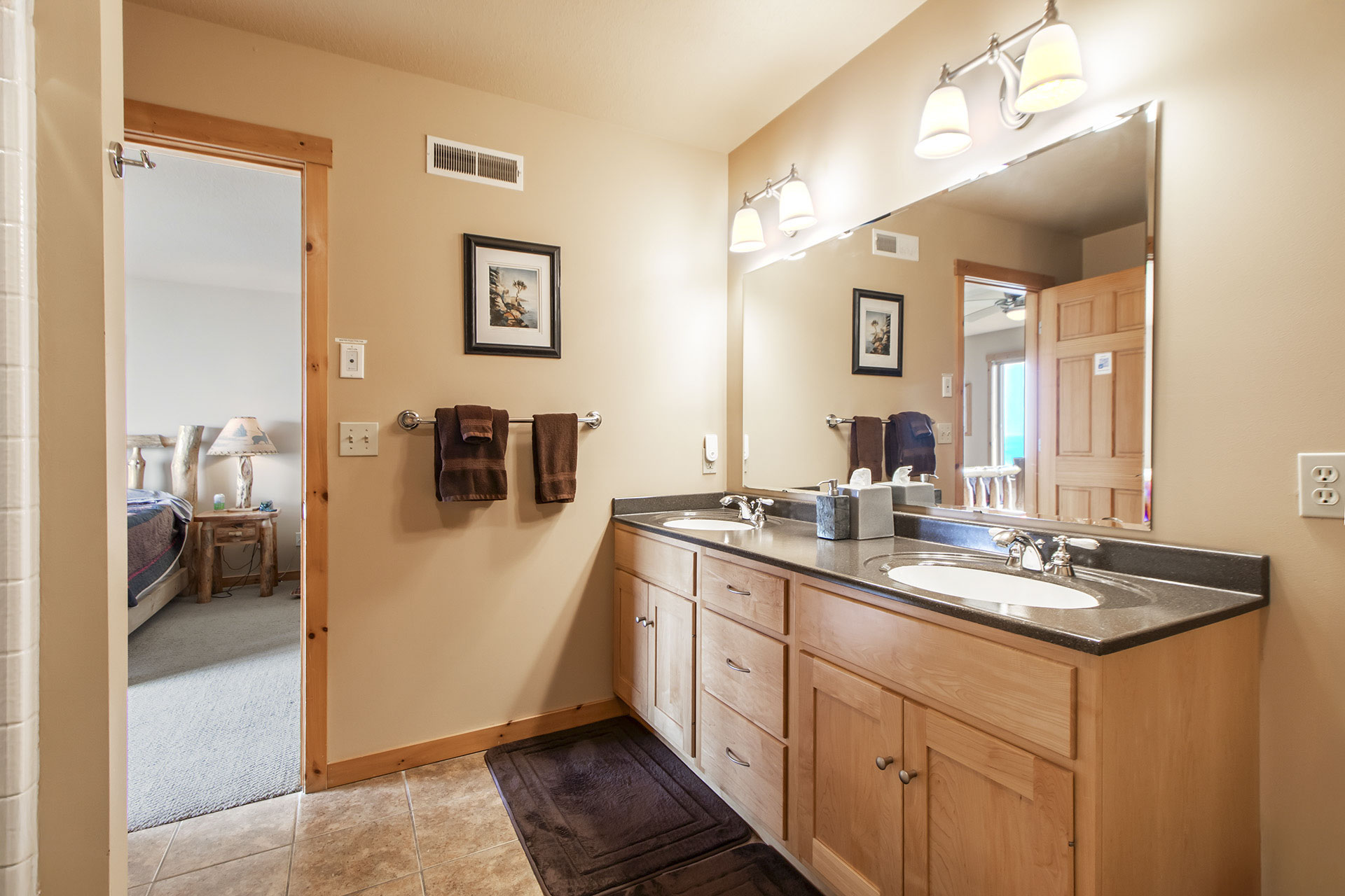 All 4 bedrooms have a dedicated bath and the owner’s suite has a two person ‘Jacuzzi’ whirlpool that overlooks the lake for romantic evenings or soothing sore muscles after an invigorating day of skiing, biking or hiking.